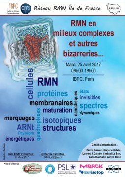Dans le cadre du réseau RMN-ile de france, des colloques d’une journée sont régulièrement organisés pour permettre aux laboratoires développant des études structurales de macromolécules biologiques par RMN et localisés en région parisienne de se rencontrer et d’échanger.